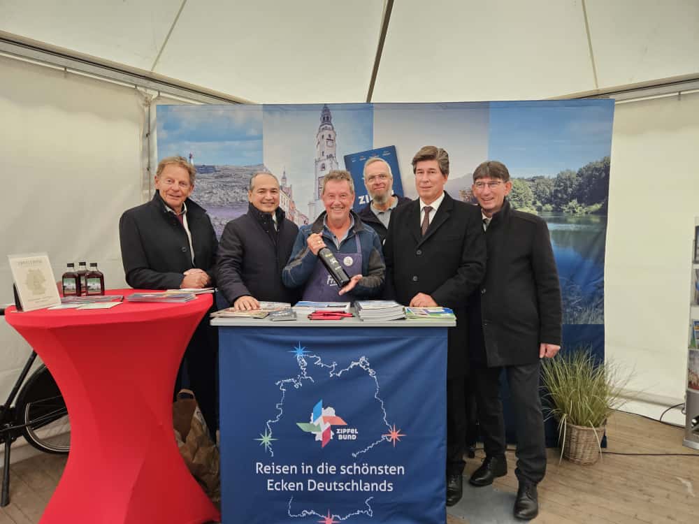 Am Stand der Zipfelorte herrschte eine lebhafte Atmosphäre. Das Trommler- und Pfeifercorps Isenbruch sowie die Band „Hat Wat“ sorgten für musikalische Beiträge. Kulinarisch boten die Gemeinden Spezialitäten wie Käse der Oberstdorfer „Käsepiraten“ und Görlitzer Weine von Axel Krüger an, der mit seinem Weingut auf das 500. Reformationsjubiläum in der Stadt Bezug nahm. Vertreterinnen und Vertreter der vier Gemeinden informierten die Gäste über touristische Angebote und regionale Besonderheiten.