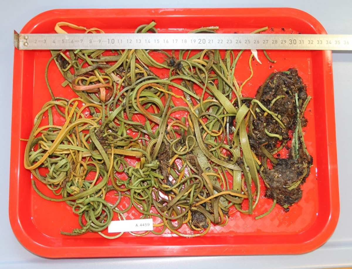 Mageninhalt des am 19. Juli 2025 verendeten Storchs in Ostritz