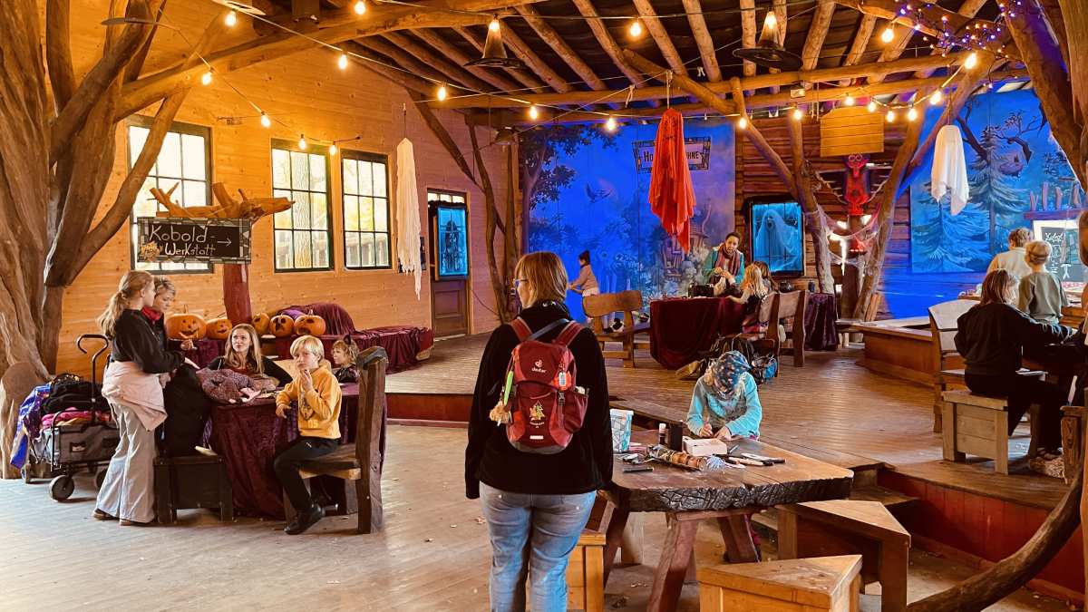 Wenn die Schatten länger werden, erweckt Höllowum die Welt der Geister: Täglich durchstreifen Kobolde, Hexen und geheimnisvolle Gestalten das Gelände. Die Koboldbaustelle lädt zum Mitmachen ein; an Bastelstationen werden Knittertonnen gebastelt, Masken gestaltet, Fackeln gebaut oder Geisterponchos verziert. Kürbisschnitzen steht ebenso auf dem Programm.