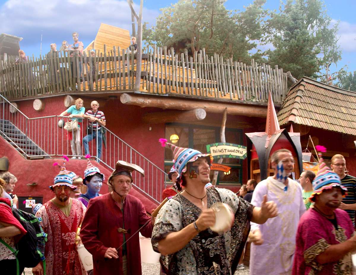 Ab etwa 12:00 Uhr versammeln sich alle im „Krönum“ – der hölzernen Versammlungsstätte mit spiralförmigem Innenleben. Dort erwarten sie tierische Begegnungen mit Coco, Darbietungen der Luftakrobatin Mira sowie ein Rückblick auf die Geschichte des Ortes in Bildern. Ein Glücksrad entscheidet zum Abschluss über eine Übernachtung im Baumhaus und fünf Familienfreikarten für die kommende Saison.